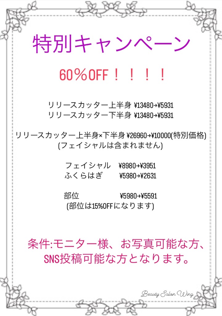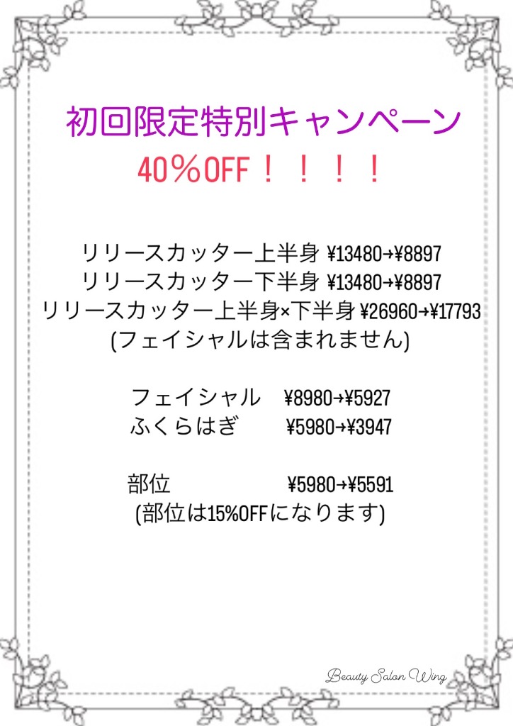 リリースカッターの特別キャンペーンが始まっております!!この機会に気になってる方は是非リリースカッターを施術してみてください!