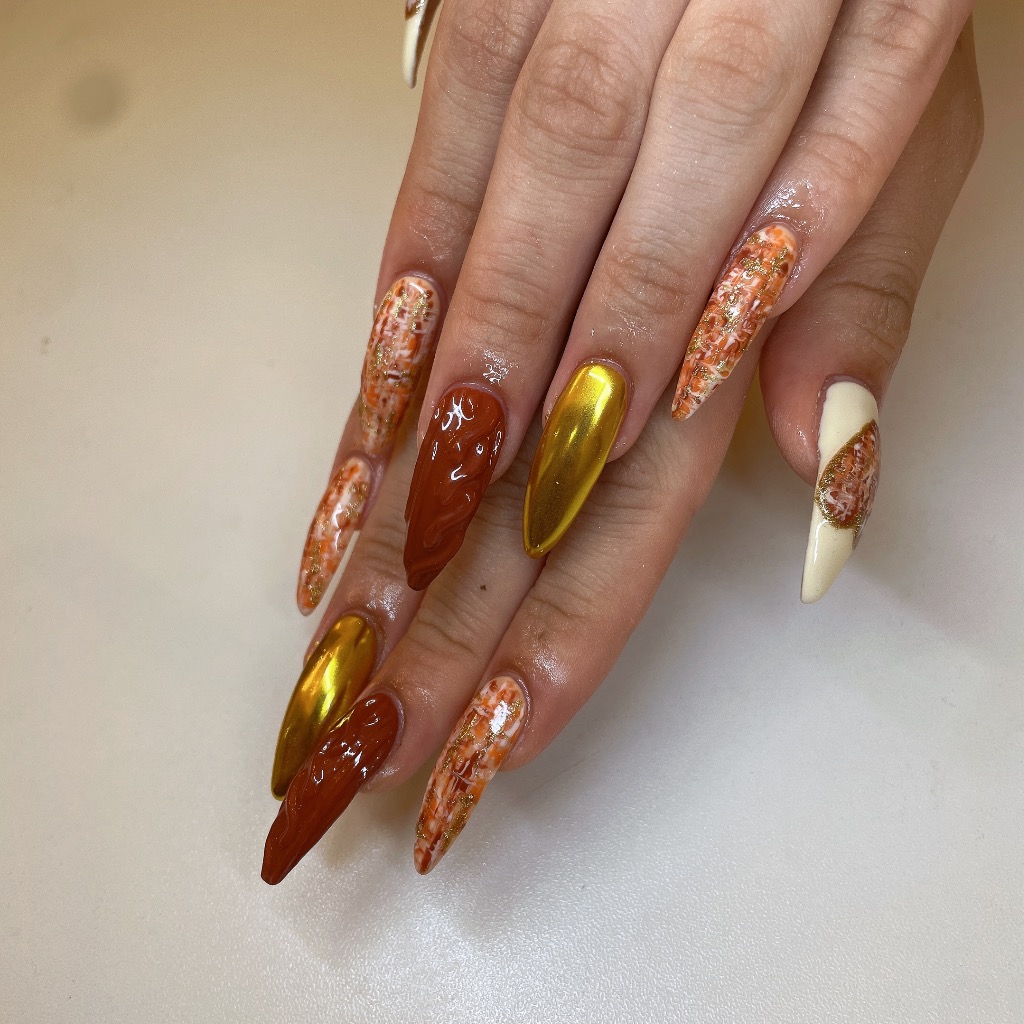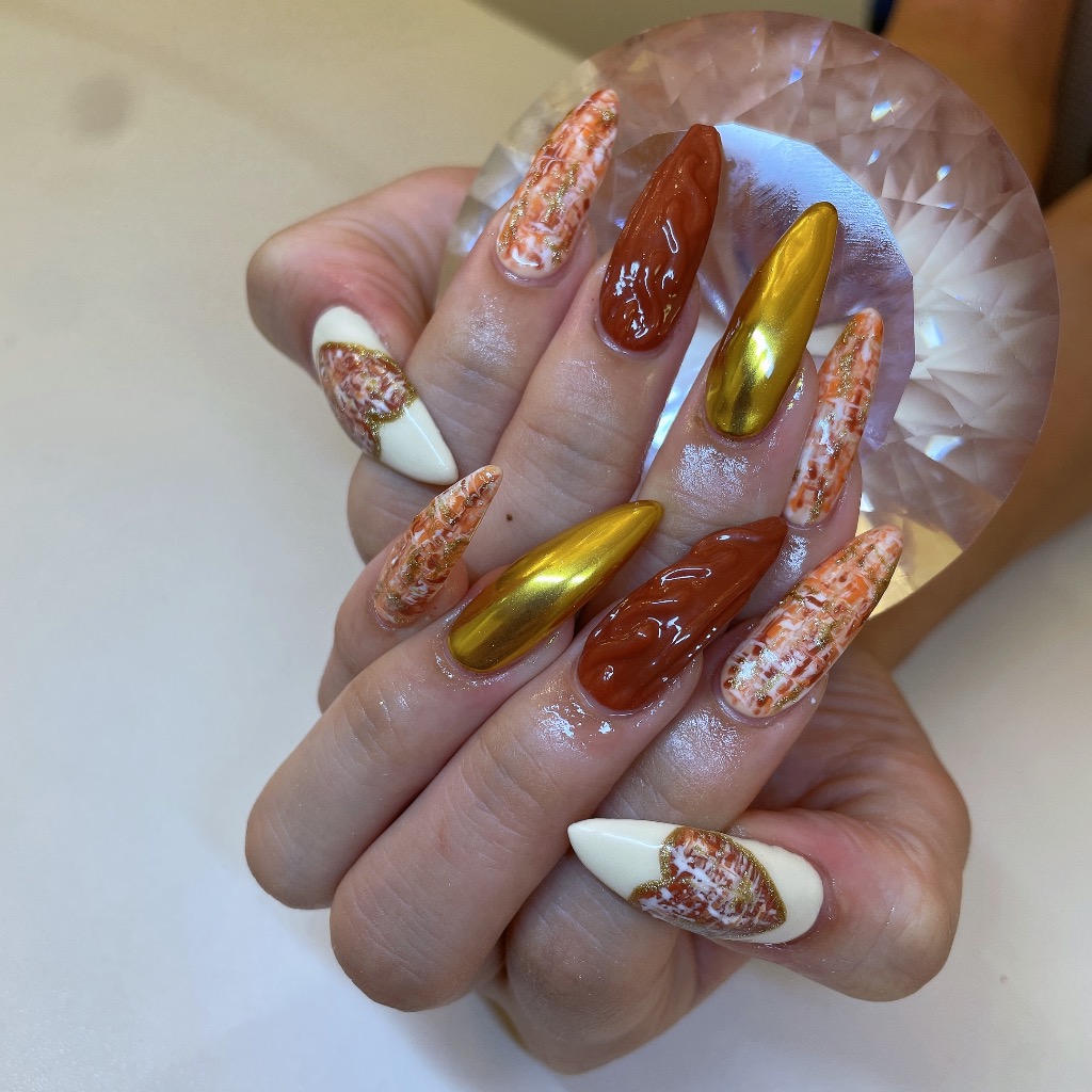 ここ何ヶ月かリピートしてくださっているお客様で今回は秋らしいデザインのネイルをしたいという事でネイリストと沢山相談をして施術をしていました💅🏻